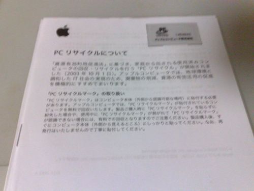 Macにはリサイクル保証書シールがあって、